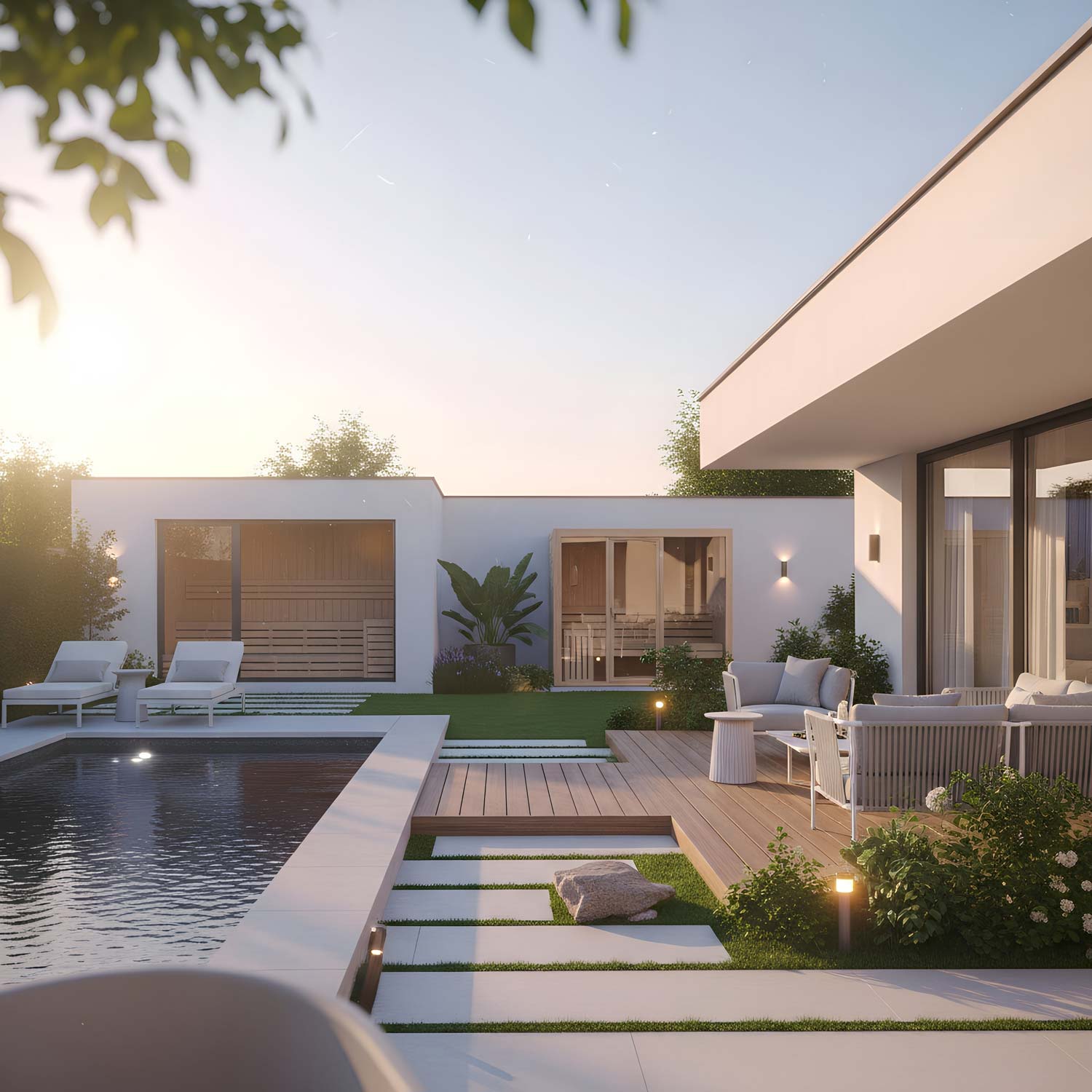 Wellness unter freiem Himmel schafft einen privaten Rückzugsort mit besonderer Atmosphäre. Ob Sauna, Ruhebereich oder ganzheitliches Spa-Konzept – wir gestalten exklusive Outdoor-Wellnessbereiche, die Entspannung, Design und Natur auf höchstem Niveau vereinen.